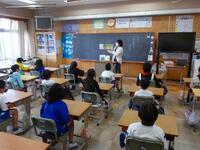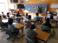 みずき小学校の校歌を作詞された作家の山口理先生をお招きし、6年生に校歌の歌詞の話や先生がされた旅の話をしていただきました。