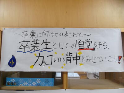 ワークスペースに「卒業に向けてのめあて」が掲げられていました。