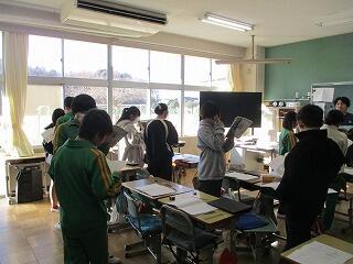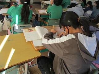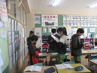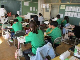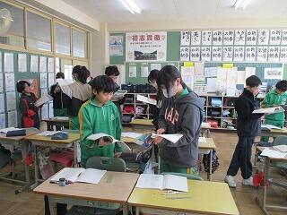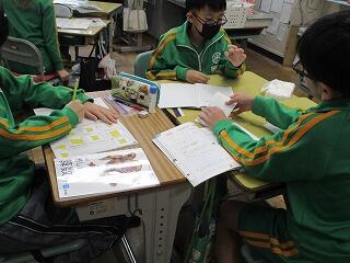 6年2組 国語「迷う」動物学者の日高敏隆氏の随筆の学習です。人や動物が、たくさんの迷いの中で、何を根拠にある決断を下すのかが書かれています。今日は最初の学習なので、ペアやグルーブで音読する活動に取り組みました。