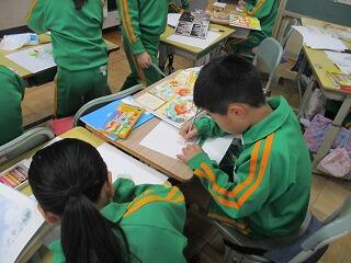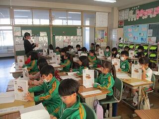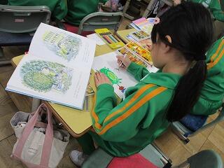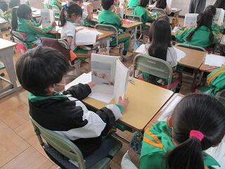 2年1組 国語「読書カード」自分のお気に入りの一冊を紹介する学習に取り組んでいました。絵を描いたり、文章を書いたりして見た人がわかるように工夫しながらカードを作成していました。