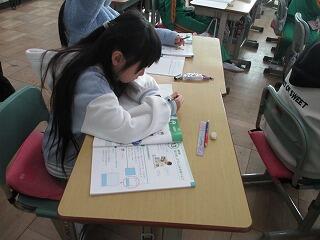5年2組 外国語「英語」単元のまとめのテストを行っていました。出題される問題は写真の通りです。CDの音声を聞きながら、問題を解いていきます。どの児童も真剣に問題を聞き解答していました。