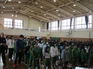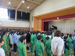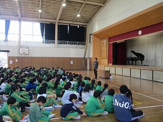昨日の昼休みに、12月の全校集会を行いました。最初に七小っ子全員で12月の歌「まっかな秋」を歌いました。秋の情景が思い浮かべるような、気持ちがこもった歌声が体育館中に響き渡っていました。