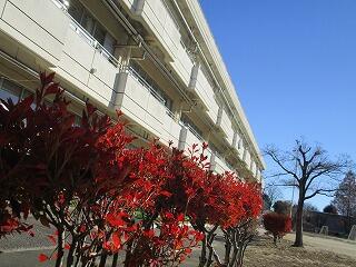 上空には雲一つなく、澄み切った青空での一日のスタートとなりました。今シーズン一番の冷え込みとなりましたが、日差しの下ではぬくもりも感じられます。校庭の「ドダンツツジ」の葉も見事に紅葉し見どころを迎えています。