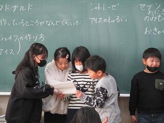 2年1組 生活科「町探検」11月26日に行った町探検の発表をしていました。グループごとにお店や施設を見学したことを、言葉や写真を使ってわかりやすく発表していました。