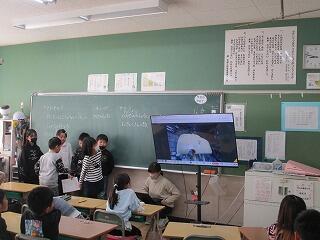 1年1組 国語「うみへのながいたび」,白くまの親子が海までの長い旅をする過程を描いた文章です。白くまの兄弟の成長とそれを見守る母ぐまの様子を読み取っていきます。今日は最初の学習なので皆で音読をして、おおよその内容を確認する活動に取り組んでいました。