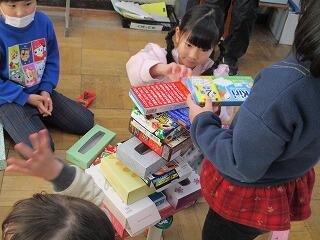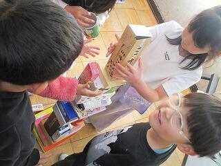 1年1組 算数「かたちあそび」ものには色々な形があり、いくつかの種類に分けられることを学習してきました。今日は学習に使った箱を使って、グループごとにタワー作りに取り組んでいました。