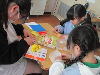 3年1組 社会科「町探検」11月13日に「ロイヤルホームセンター」に見学に行ったお礼に、個々にメッセージを書きました。今日はメッセージをはった周りの飾り付けを作る活動に取り組んでいました。感謝の気持ちが伝わるように心を込めて作業を進めていました。