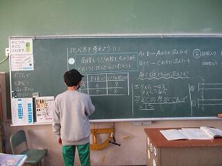5年1組 算数「比べ方を考えよう」今日は込み具合を比べる学習に取り組んでいました。考え方がいくつかあるので、それぞれ根拠となる理由をしつかりと考えながら答えを導いていました。