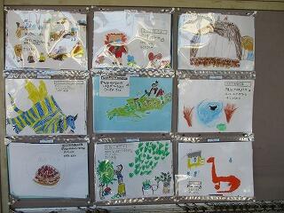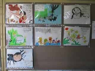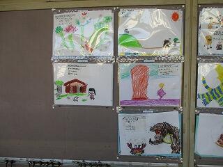 2年1組 国語「本の紹介」2年生の廊下には本を紹介したカードが掲示されています。絵の他、題名や作者なども入ったわかりやすい作品になっています。どのイラストも本の特長がよく描かれています。
