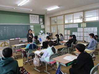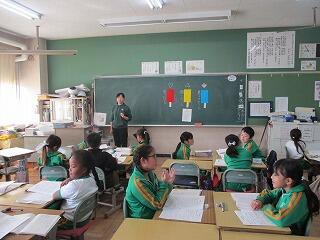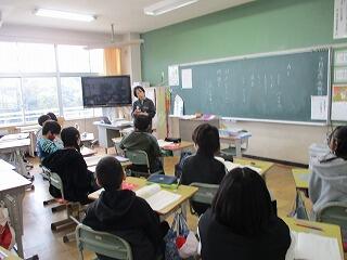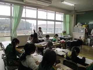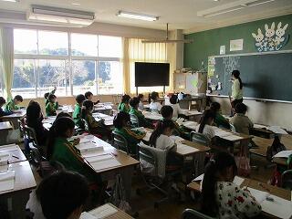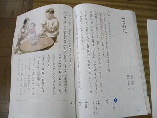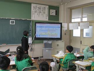 4年1組 国語「一つの花」太平洋戦争末期の日本を舞台に、出征する父親が幼い娘のゆみ子に「コスモス」の「一つの花」を渡す内容の物語文の学習です。今日は題名がなぜ「一つの花」なのか、皆で考える学習に取り組んでいました。