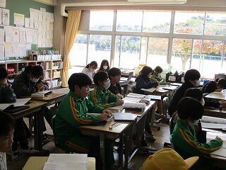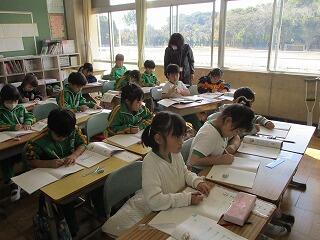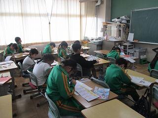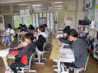 4年1組 国語「文章づくり」色々な言葉を使って文章を作る学習です。「固まる」の言葉を使って文章を作る活動では国語辞典を使って意味を確認したり、使われ方を見つけたりしながら様々な文章を作っていました。