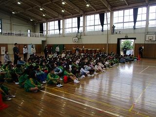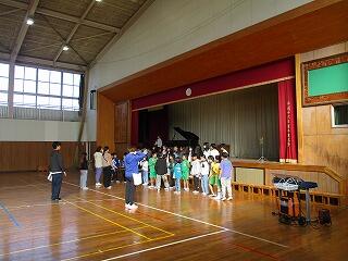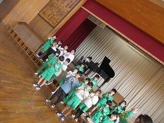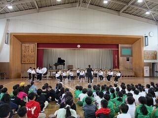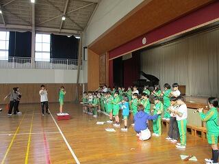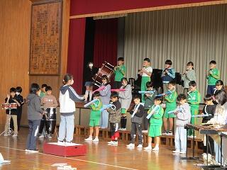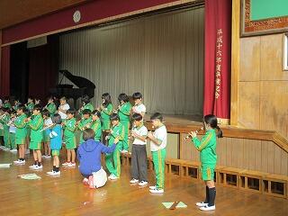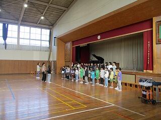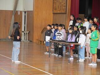 5年1・2組 音楽「合唱・合奏」11月8日(土)の「音楽発表会」の本番の発表に向けて、体育館で練習を行いました。入退場の仕方を練習した後、実際に演奏をしてリズムや音程などを確認していました。練習を繰り返すたびに上手になっているのがわかります。