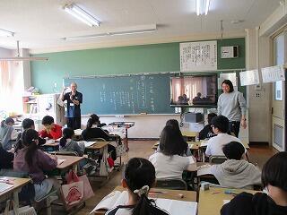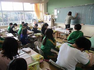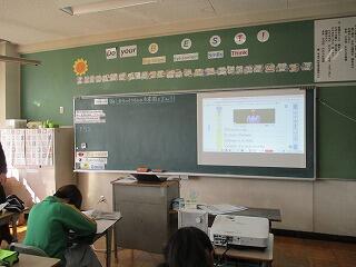 6年2組 外国語「英語」今日の学習は自分の持ち物の生産国を英語でたずねたり答えたりする学習です。ビデオ映像を見て英文を確認した後、自分の持ち物についての英文を作り、友達と紹介し合っていきます。