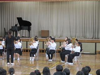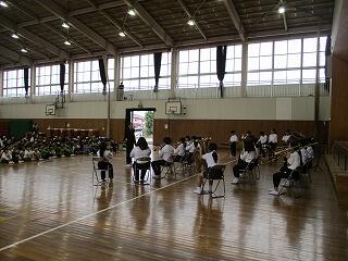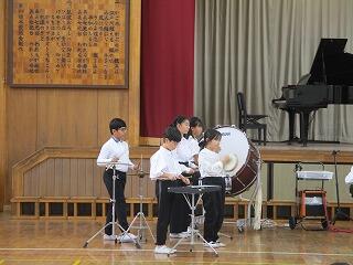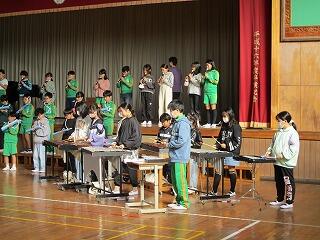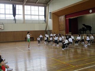 昼休みの時間に「音楽部を励ます会」を行いました。音楽部は来週の木曜日に野田市文化会館で行われる「市内小中学校音楽会」に出演します。その時に演奏する「聖者の行進」「鉄腕アトム」を七小児童の前で演奏しました。美しい演奏が体育館中に響き渡り、聞いている児童も美しい音色に耳を傾けていました。本番当日も、聞いている人たちの心を温かくする演奏をしてくれることと思います。