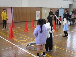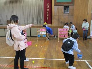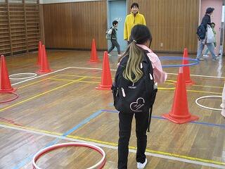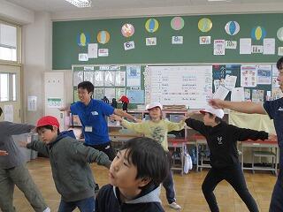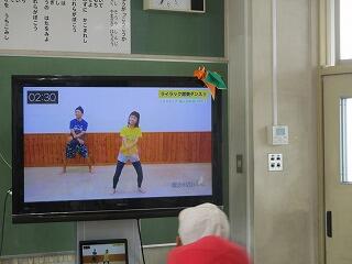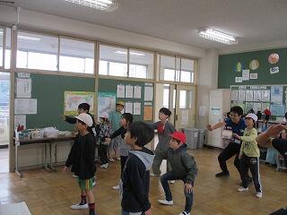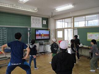 ひかり学級 体育「体つくり運動」ビデオ映像を見ながら体操を行っていました。様々な動きがある体操なので、子どもたちはリズムに合わせて楽しそうに体を動かしていました。
