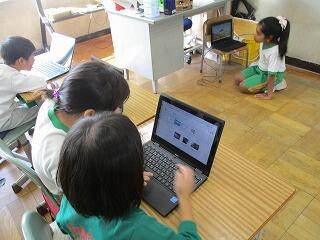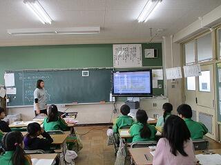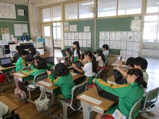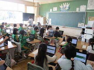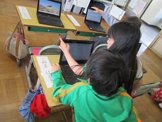1年1組 学級活動「アンケート」クロームブックを使って、アンケートの回答をしていました。クロームブックを定期的に使ってきたので、操作の仕方も上手になってきています。わからないことは、友たちに助けてもらいながら操作していました。