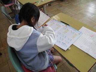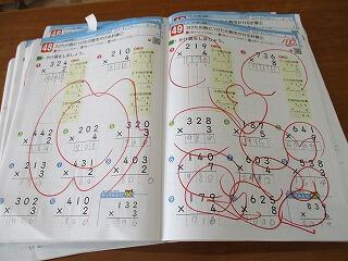 3年1組 算数「かけ算」かけ算の筆算の学習に取り組んでいました。3桁×1桁の筆算の問題を計算ドリルを使ってたくさん解いていました。数多くの問題を解くことで、理解が深まってきています。