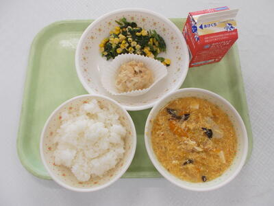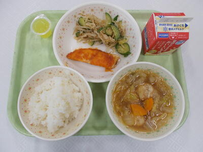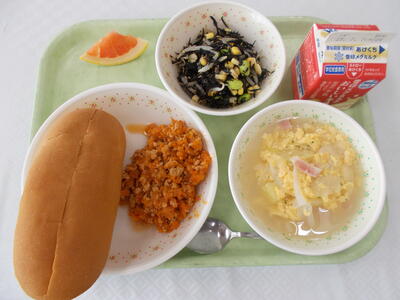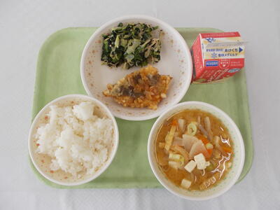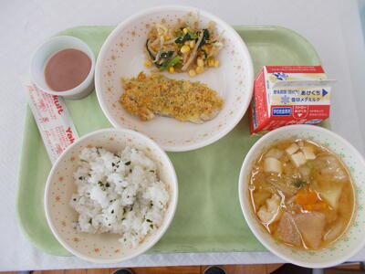 わかめごはん、ぎゅうにゅう