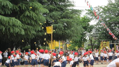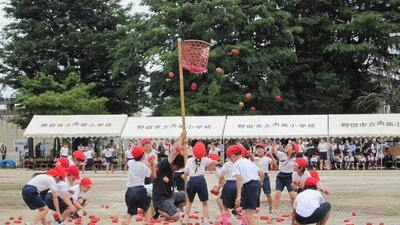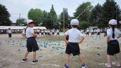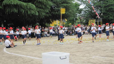 1年生の「チェッコリ玉入れ」、2年生の「えびかに玉入れ」です。ダンスがかわいい!!