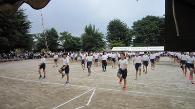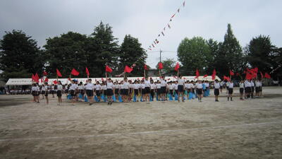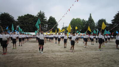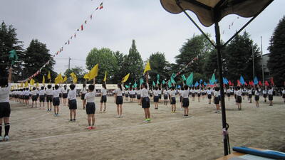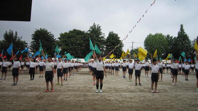 昨日のお天気を考えると、今日の天気は奇跡のようでした。ちょっと蒸し暑かったけど、感動いっぱいの「南小大運動会」になりました。開会式の様子から。