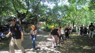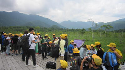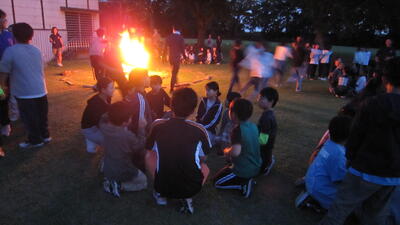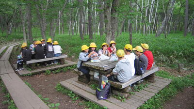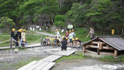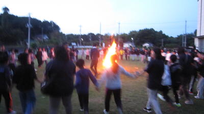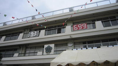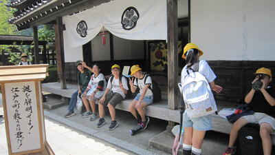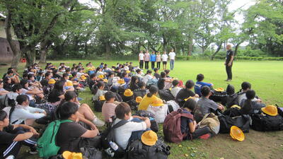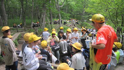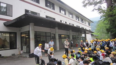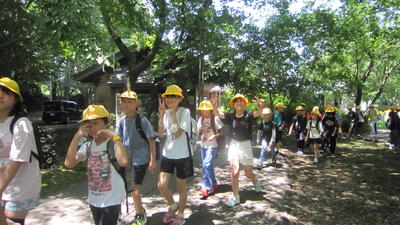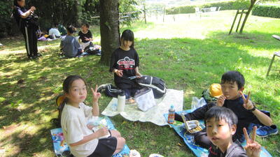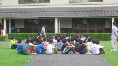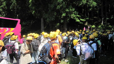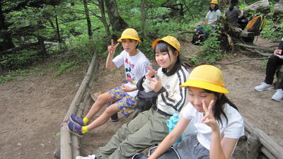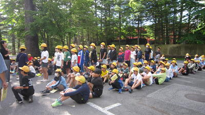 学校に戻ってきました。みんなで励まし合いながら山頂まで頑張って登りました。