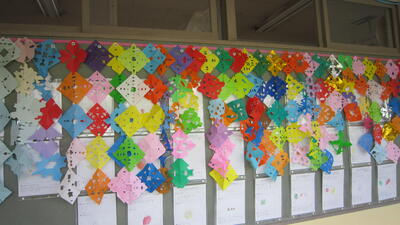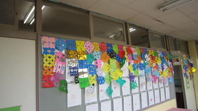 こんな素敵な飾りが飾られていました。7月の七夕飾りにも使えそうですね。
