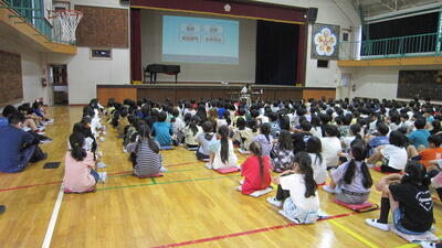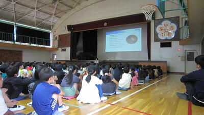 みんな真剣に聞いていました。早く寝ると「疲れもとれるし、体も大きく成長するし、お勉強も出来るようになる」のでしたね。睡眠時間は10時間が理想です。
