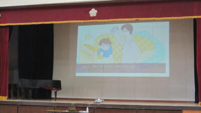次は、昨日実施した2年生への「早寝 早起き 朝ごはん」の指導の様子です。