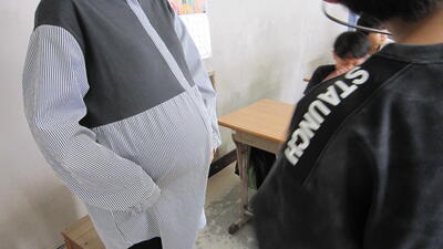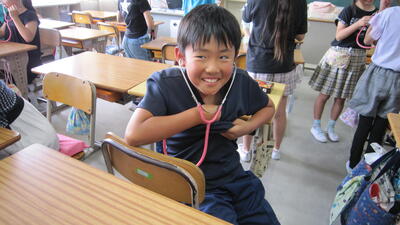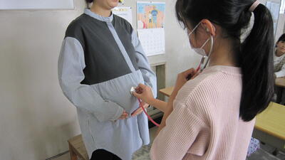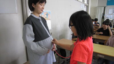 担任の先生のおなかにいる赤ちゃんの心音、聞こえますか?