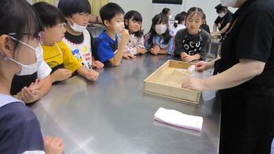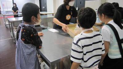 また、その後2年生は、給食で提供する「そらまめ」剥き体験をしました。