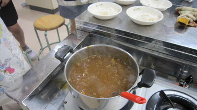 さて、5年生は、来週の林間学校に向けて、カレーづくりの練習をしました。