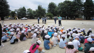 野田警察署の署員さんがきてくださり、1年生に不審者についてお話ししていただきました。