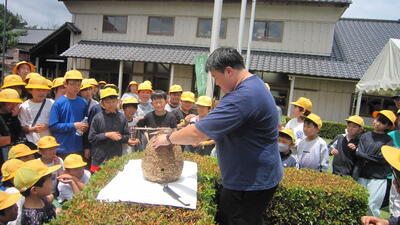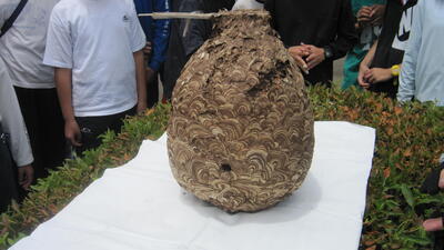 最後に昨年度捕獲した蜂の巣を割らせていただきました。