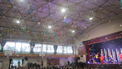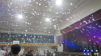 午後は雨模様のなか、体育館でボランティアの皆さんがイベントを開いてくれました。
