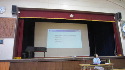 低学年向き、高学年向きとそれぞれ内容を少し変えて、個人情報のことやネットのこと。ライントラブルやゲーム依存のことなど、児童にわかりやすく指導していただきました。