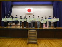 修了式では、1年生から5年生までの代表児童が、1年間頑張ったことを発表しました。持久走で上位を目指して練習に取り組んだこと、1年間を通して成長したことなどを堂々と発表することができました。