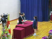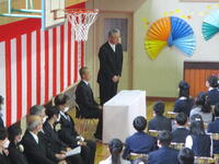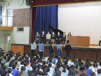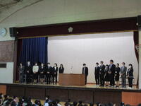 (しきなみ短歌コンクール表彰)    (校歌せい唱)      (1年間頑張ったことの発表)