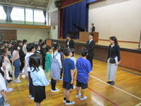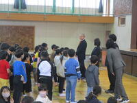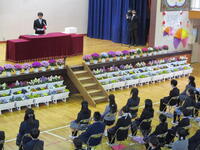 27日(金)に、令和4年度修了式と今年度末で転退職される先生方とのお別れの会が行われました。3年ぶりに全校児童が体育館に集まり、式を実施することができました。