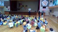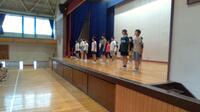 はじめに、1年生と6年生が手をつないで入場しました。次は皆でリトルバードのダンスです。手をたたいたり、腰をかわいらしくふったりと、楽しく踊ることができました。さらに、各学年からの○×クイズです。南部小のキャラクターの名前や、校歌、校庭の梅の木などに関する問題が出されました。(校歌には幻の4番が存在する。○?×?果たして正解は!?)最後は校歌を歌いました。1年生も元気よく歌うことができました。