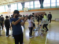今回は、PTAの方々を中心とした保護者の皆様が「射的」「スリッパかご入れ」「輪投げ」「豆うつし」「ピンポンカップイン」「お手玉投げ」の6種類のゲームを準備してくださいました。