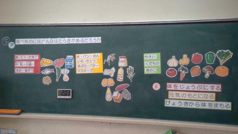 たべものにはどんなはたらきがあるのか、当日の給食のメニューと合わせて学習しました。