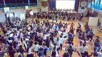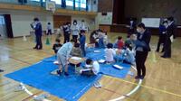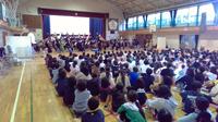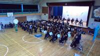30日(水)の昼休みに、ミニバス・サッカー部をはげます会が行われました。(5・6年生が体育館に集まり、1~4年生はオンラインでの参加となりました。)