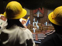 国会議事堂では、議員食堂で昼食を食べ、見学へと向かいました。衆議院参観者ホールで待機していると、なんと現法務大臣の齋藤健さんが来てくださり、お忙しい中少しだけお話を聞くことができました。そして、中央玄関や中央広間、天皇陛下の御休所、テレビでしか見たことのない衆議院本会議場を見学することができました。国会議事堂の外には、都道府県から贈られた木がありました。