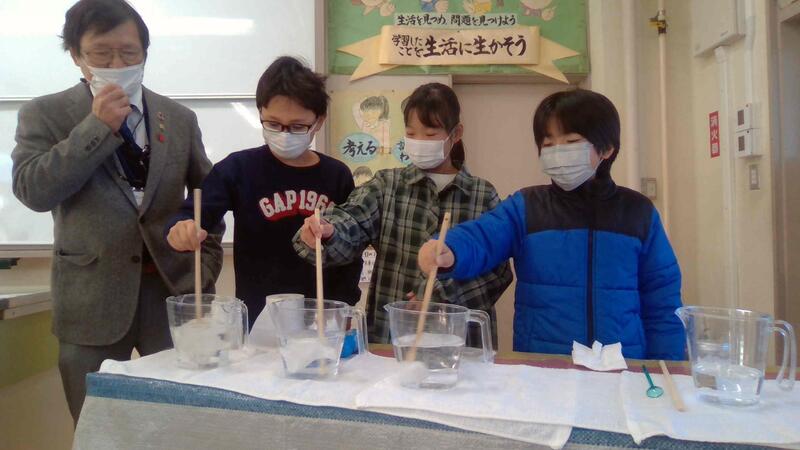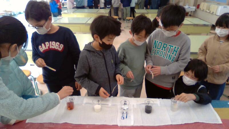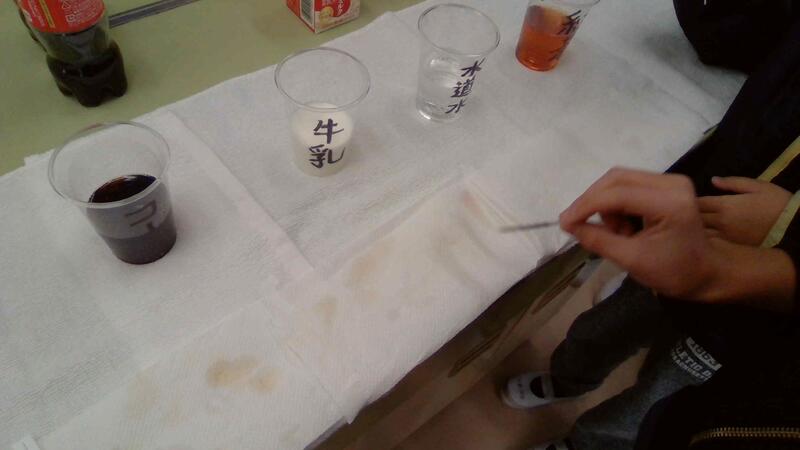 2~5時間目には各クラスごとにわかれ、家庭科室で実験をしました。