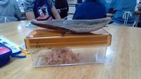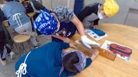 講師の方がかつお節から出汁をひくと、教室内によい香りがただよってきました。子ども達は実際にひいた出汁を見て、「すごい!」「おいしそう。」などの声をあげていました。カンナを使ってかつお節を削る時は、力の加減が難しく苦戦している様子も見られましたが、削ったかつお節を見て「食べたい!」と盛り上がっていました。かつお節は削ると酸化してしまうので、けずりたてが一番おいしいそうです。また、出汁を引くときに残ったかつお節をいためて砂糖、みりん、しょう油を加えると、おかかふりかけができるそうです。家でもぜひ挑戦してもらいたいと思います。1時間の学習でしたが、たくさんのことを学ぶことができました。