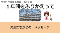 3月になりました。卒業式や修了式など大切な行事があります。1年間の成長を自覚し、自信を持って進級・進学できるように励ましていきます。ご協力よろしくお願い致します。