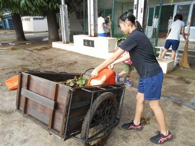 台風24号の暴風雨はすごかったです。昨晩の強い風で木々の枝や実がたくさん落ちていました。朝から、子どもたちや先生方がボランティア活動できれいにしてくれました。ありがとうございました。