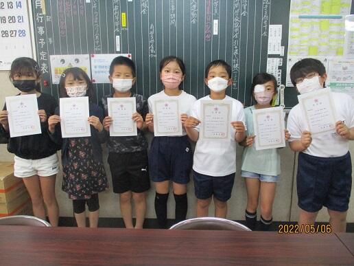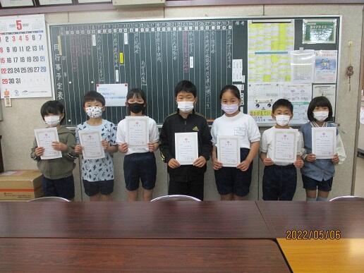 はじめに、あおいそら善行賞の紹介です。令和3年度の活動から5名の児童が表彰されました。