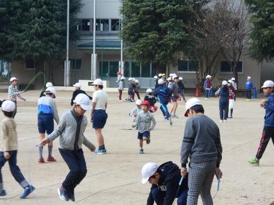 校庭でも縄跳びが多くなりました。