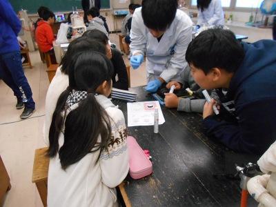 理工学部の最先端化学科の学生さんにもたくさん指導していただきました。